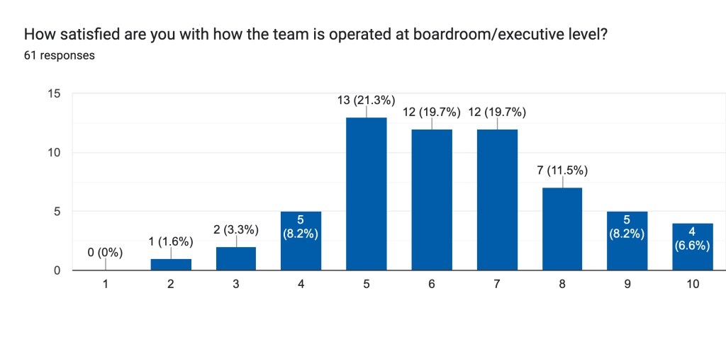 Analysis: Feels broadly positive, with the majority of responses in the 7 and 8 range, though 5 and 6 feature more prominently than 9 or 10.