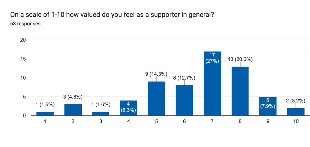 Analysis: By far the smallest (6.4%) demographic is fans who regularly travel to away games, and 61.9% don’t attend any. Not a fantastic sign for a club with lofty ambitions. This is a topic SheGulls has highlighted heavily and hopefully the club will be more active in encouraging or arranging away travel in the future.
